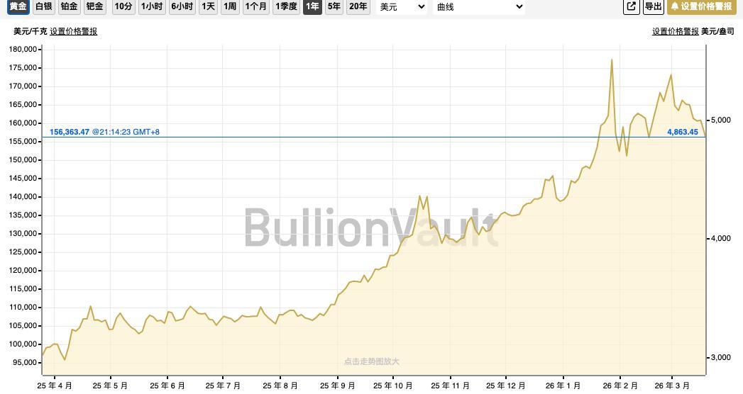 3月18日,国际金价再次跌破每盎司5000美元关口,现货黄金一度下探至4976美元附近。